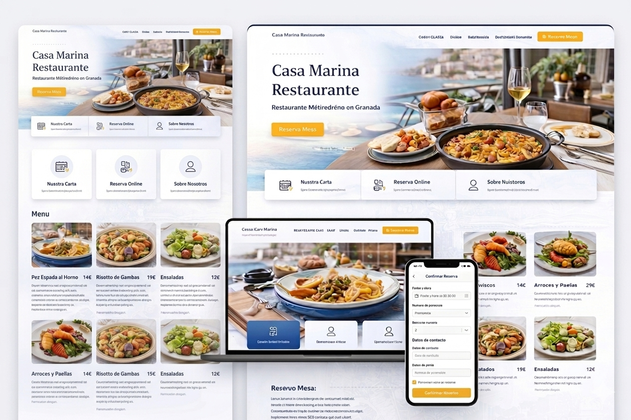 Rediseño completo de la presencia digital de un restaurante mediterráneo en Granada. Web corporativa con reservas online, carta visual y optimización SEO local que triplicó las visitas orgánicas en 3 meses.